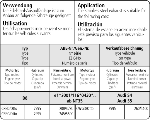 Eine Verwendung des Endschalldämpfers alleine ist nicht möglich! Es kann nur die Komplettanlage montiert werden.