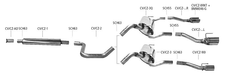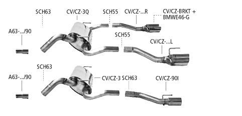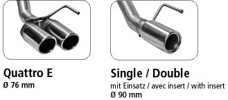 Endrohr mit Einfach-Ausgang, mit Einsatz für Ausgang LH+RH, LH 1 x Ø 90 mm