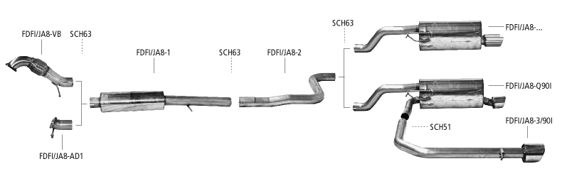 Um ein Ausschneiden der Original Heckschürze beim Fiesta Typ JA8 zu vermeiden, wird empfohlen, bei Verwendung des Endschalldämpfers mit Doppel-Endrohr, Art-Nr. FDFI/JA8-70T oder FDFI/JA8-70E, den Heckschürzenansatz FDFI/JA8-HE1 oder bei Verwendung des Endschall-dämpfers mit Einfach-Endrohr RH, Art-Nr. FDFI/JA8-Q90I und des Endrohrsatzes LH, Art-Nr. FDFI/JA8-3/90I, den Heckschürzenansatz FDFI/JA8-HE2 mit zu verwenden.