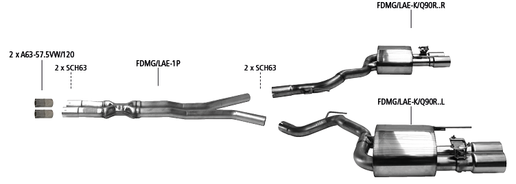 Endschalldämpfer mit Doppel-Endrohr 2 x Ø 90 mm LH (im RACE-Look) mit Abgasklappe