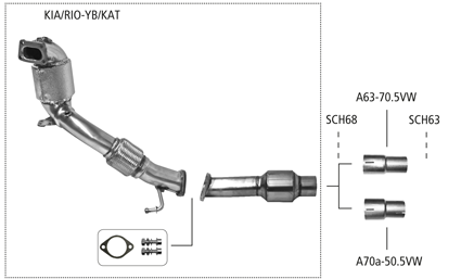 Performance Katalysatorkit 200-Zeller mit ECE Zulassung bestehend aus Haupt- und Nachkatalysator u. Befestigungskit KIACE/T-FK