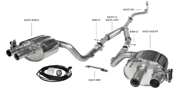 Die Endschalldämpfer können nicht alleine montiert werden. Es kann nur die Komplettanlage mit dem Vorschalldämpfer KIA/STI-1A (Fzg. ohne Partikelfilter) bzw. KIA/STI-1A/PF (Fzg. mit Partikelfilter) montiert werden. Bei Fahrzeugen ohne Partikelfilter kann zusätzlich noch das Verbindungsrohr KIA/STI-VB1 montiert werden.