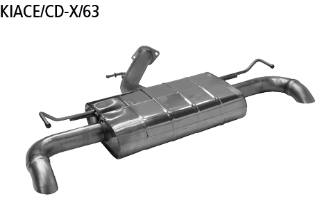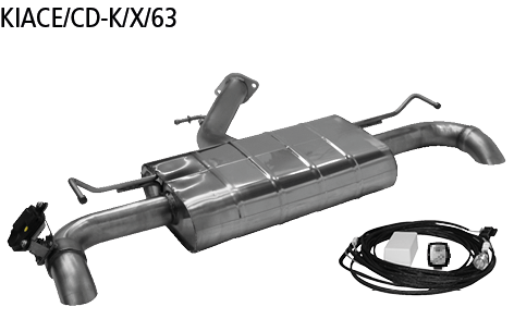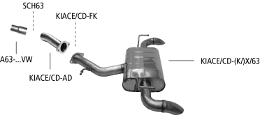 Die Endschalldämpfer können auch alleine montiert werden. Zur Montage benötigt man zusätzlich den Adapter A63-...VW, den Adapter KIACE/CD-AD und das Befestigungskit KIACE/CD-FK!