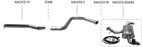 Die Endschalldämpfer können auch alleine montiert werden. Zur Montage benötigt man zusätzlich den Adapter A63-...VW, den Adapter KIACE/CD-AD und das Befestigungskit KIACE/CD-FK!