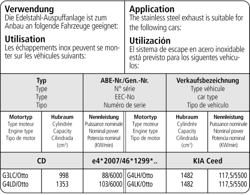 Die Endschalldämpfer können auch alleine montiert werden. Zur Montage benötigt man zusätzlich den Adapter A63-...VW, den Adapter KIACE/CD-AD und das Befestigungskit KIACE/CD-FK!