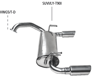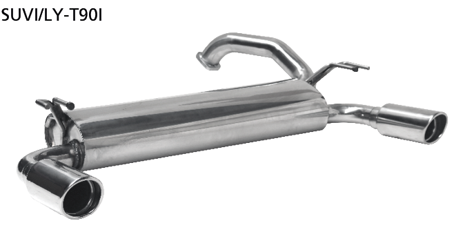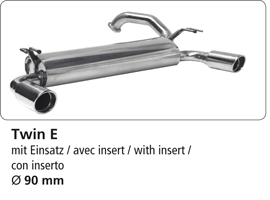 Endschalldämpfer mit Einfach Endrohr 1 x Ø 90 mm LH+RH 20° schräg, mit Einsatz, mit Lippe