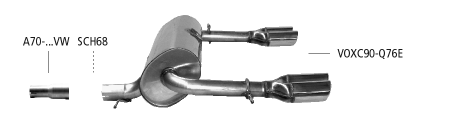 Endschalldämpfer mit Doppel-Endrohr 2 x Ø 76 mm LH + RH, mit Lippe, 20° schräg geschnitten