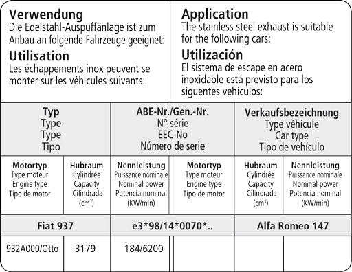 Bei Montage der Komplettanlage wird beim GTA kein Adapter benötigt. Die Endschalldämpfer können auch alleine verwendet werden. Zur Montage des Endschalldämpfers wird der Adapter A63a-63VW benötigt.