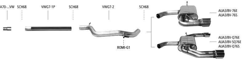 Endschalldämpfer mit Doppel-Endrohr LH + RH, 2 x Ø 76 mm, 20° schräg geschnitten, 3-Türer + Sportback
