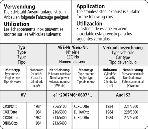 Endschalldämpfer mit Doppel-Endrohr LH + RH 2 x Ø 85 mm (im RACE Look) Audi S3 8V 3-türer + Sportback