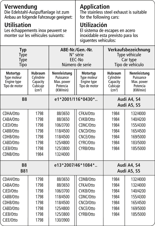Vorschalldämpfer (wird nur bei Fahrzeugen mit original 3 Schalldämpfern benötigt)