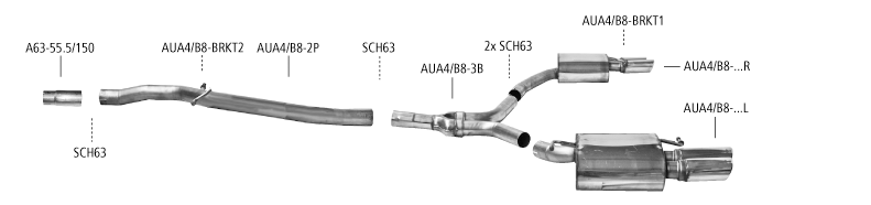 - A4/A5 B8 (ab B. 2008) 4 Zyl. Diesel 2 Endschalldämpfer LH+RH außer A5 B8 Sportback