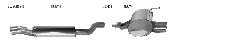 Endschalldämpfer mit Doppel-Endrohr LH 2 x Ø 85 mm (im RACE-Look) Nur passend für E82 Coupé mit M-Heckschürze