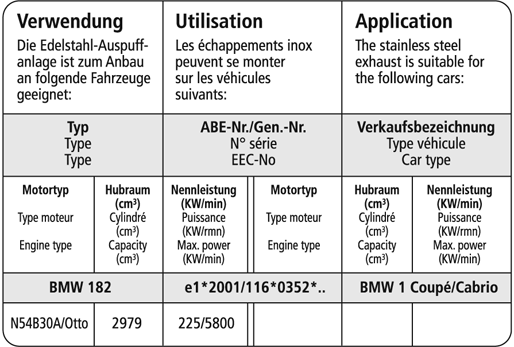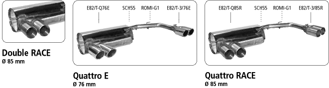 Endrohrsatz mit Doppel-Endrohr RH 2 x Ø 85 mm (im RACE-Look) Nur passend für E82 Coupé mit M-Heckschürze
