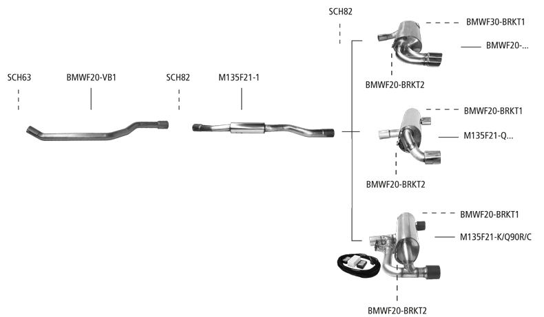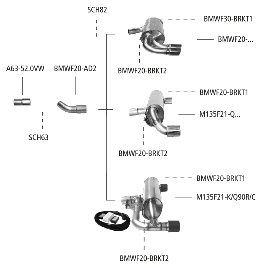 BMWF20-BRKT2 (LH) benötigt. Zur Montage des Endschalldämpfers M135F21-Q90R(S) oder