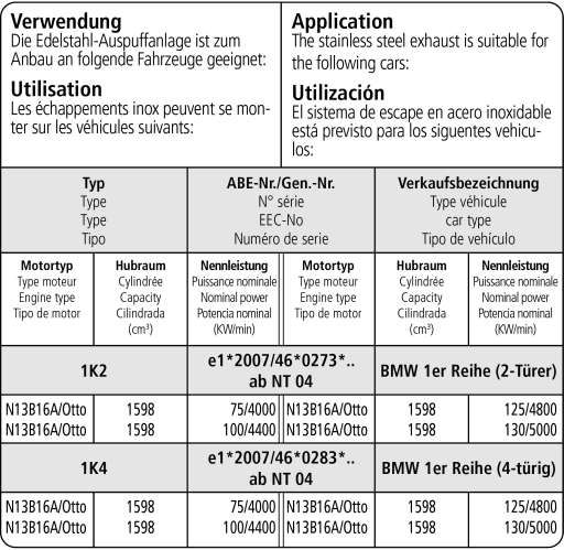Bei Fahrzeugen mit orig. Endrohr(en) nur LH, die keine M-Heckschürze serienmäßig haben,