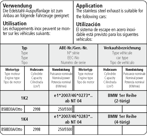 Ersatzrohr für Vorschalldämpfer (Dieser Artikel ist nicht für die Nutzung im öffentlichen Straßenverkehr zulässig - Einsatz nur für Rennsportzwecke!) für Fahrzeuge mit Partikelfilter (außer F23 Cabrio)