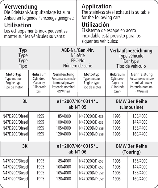 Endschalldämpfers BMWF30-Q... empfohlen den Heckschürzeneinsatz BMWF30-HE2 mitzuverwenden.