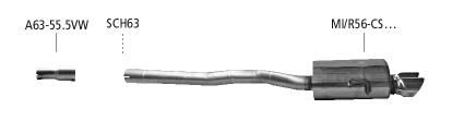 Der Endschalldämpfer kann auch alleine montiert werden. Zur Montage wird der Adapter A63-55.5VW benötigt!