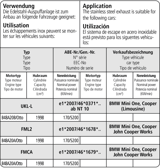 Die Endschalldämpfer können auch alleine montiert werden. Zur Montage wird das Verbindungsrohr MI/F56-CS/VB benötigt.
