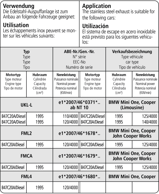 Ersatzrohr für Partikelfilter (Dieser Artikel ist nicht für die Nutzung im öffentlichen Straßenverkehr zulässig Einsatz nur für Rennsportzwecke!)