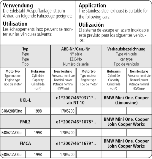 Eine Verwendung des Endschalldämpfers alleine ist nicht möglich! Es kann nur die Komplettanlage montiert werden.