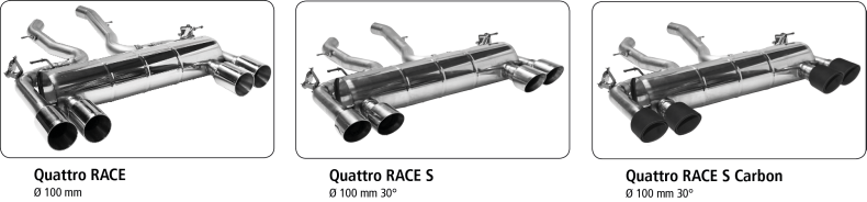 Endschalldämpfer LH+RH mit Doppel-Endrohr 2x Ø 100 mm (im RACE Look), für Serienabgasklappe