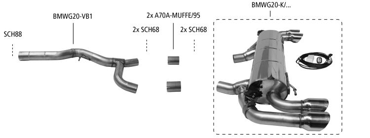 Endschalldämpfer mit Doppel-Endrohr 2x Ø 90 mm LH+RH (im RACE Look), mit Klappensteuerung
