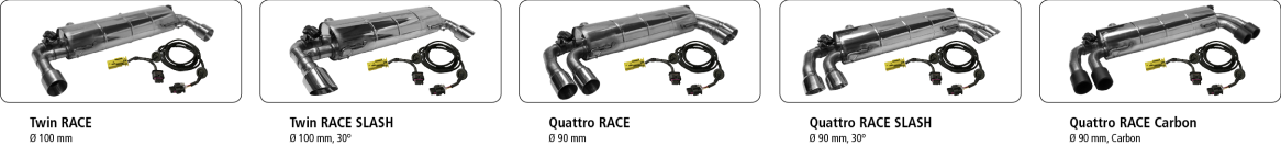 Endschalldämpfer mit Doppel-Endrohr 2x Ø 90 mm LH+RH (im RACE Look), 30° schräg geschnitten, mit Klappensteuerung