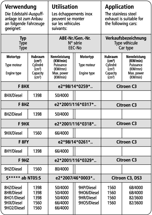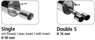 Bei Diesel Modellen kann nur der Endschalldämpfer alleine montiert werden. Zur Montage des Endschalldämpfers benötigt man neben dem Adapter A63-...VW zusätzlich das Verbindungsrohr PG207-2! Bei Montage des Double S Endschalldämpfers (CNC3-76T) muss die original Heckschürze ausgeschnitten werden.
