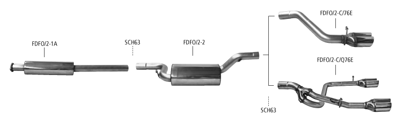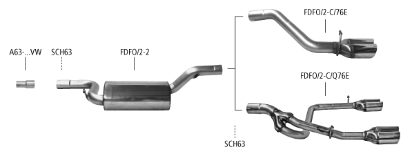 Zur Montage des Endrohrs LH + RH benötigt man neben dem Aufhängegummi ROMI-G1, 1x den Halter FDFO/2-BRKT. Bei Fahrzeugen mit elektronischer Handbremse ist eine Verwendung des Einfach-Endrohres LH+RH und des Doppel-Endrohres LH+RH nicht möglich!
