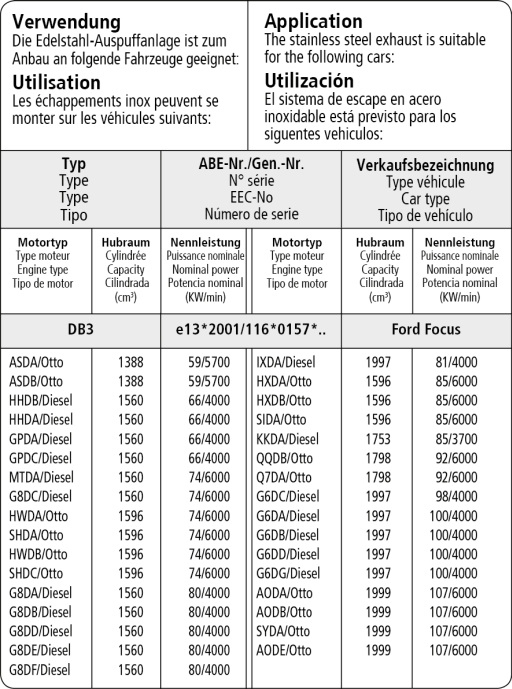 - Focus 2 (ab Bj. 2004) Kombi Benziner + Diesel ohne Rußpartikelfilter