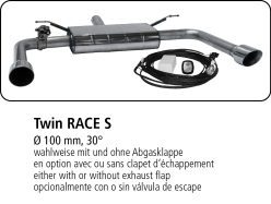 Endschalldämpfer mit Einfach-Endrohr 1x Ø 100 mm LH+RH (im RACE Look), 30° schräg geschnitten mit Klappensteuerung