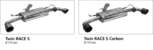 Endschalldämpfer mit Einfach-Endrohr 1x Ø 110 mm LH + RH, 25° schräg, im RACE Look, für Serienklappensteuerung
