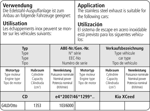 Die Endschalldämpfer können auch alleine montiert werden. Zur Montage benötigt man zusätzlich den Adapter A63-...VW, den Adapter KIACE/CD-AD und das Befestigungskit KIACE/CD-FK!