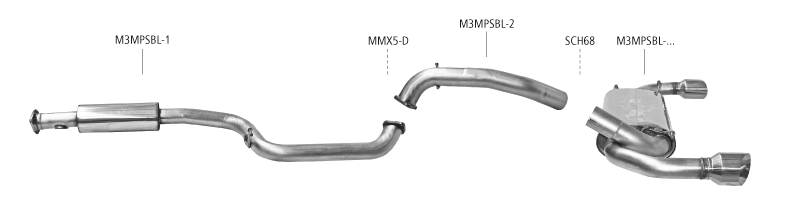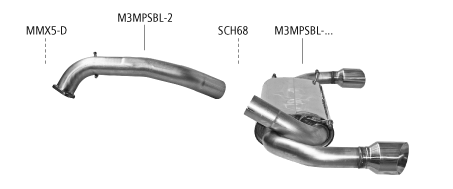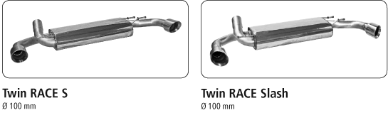 Endschalldämpfer mit Einfach-Endrohr LH +RH 1 x Ø 100 mm, 30° schräg geschnitten (im RACE Look)