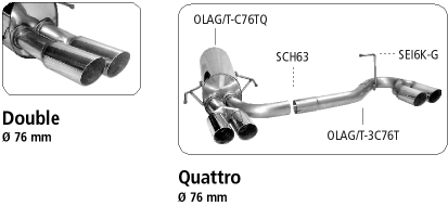 Endrohrsatz RH mit Doppel-Endrohr 2 x Ø 76 mm