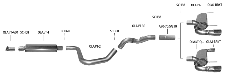 Adapter Endschalldämpfer auf Mittelschalldämpfer auf Ø 70.5 mm