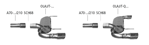 Endschalldämpfer mit Einfach-Endrohr oval Ausgang LH + RH 120 x 80 mm