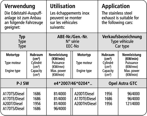 - Astra J GTC Turbo Benziner mit serienmäßig 3 Schalldämpfern (außer Caravan)