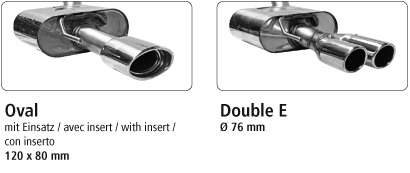 Endschalldämpfer mit Doppel-Endrohr mit Lippe 20° schräg geschnitten 2 x Ø 76 mm Ausgang LH