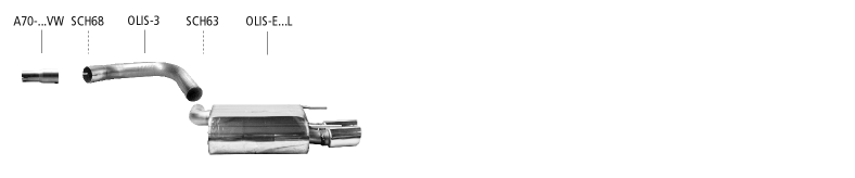 Bei Fahrzeugen mit serienmäßig nur 1 Endschalldämpfer benötigt man bei Montage des Endschalldämpfers alleine den Adapter A70-…VW und das Verbindungsrohr OLIS-3.