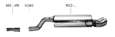 Endschalldämpfer mit Doppel-Endrohr 2 x Ø 76 mm