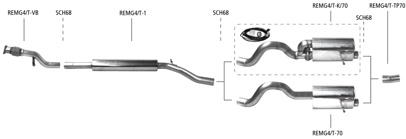 Die Endschalldämpfer können auch alleine verwendet werden. Zur Montage des Endschalldämpfers wird der Adapter A70-54.5 VW benötigt.