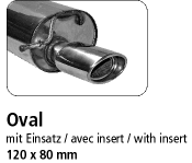 Endschalldämpfer mit Einfach-Endrohr oval 120 x 80 mm