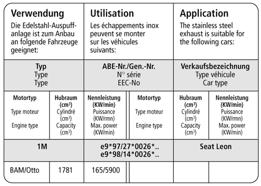 Eine Verwendung des Endschalldämpfers alleine ohne Vorschalldämpfer ist nicht möglich!