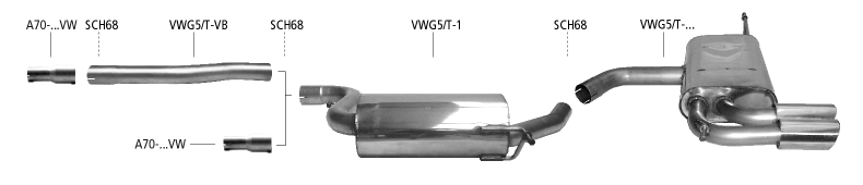 Performance Katalysator (mit ABE Gutachten) Euro 5 / Euro 4 bestehend aus Turboabgangsrohr mit 2 Performance Katalysatoren, einem Verbindungsrohr und einer Montage Schelle (nur für 1,8 l und 2,0 l Turbo Modelle).