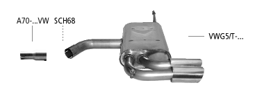 Endschalldämpfer mit Doppel-Endrohr 2 x Ø 76 mm LH + RH 20 ° schräg geschnitten