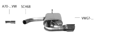 Endschalldämpfer mit Doppel-Endrohr LH, 2 x Ø 76 mm, 20° schräg geschnitten