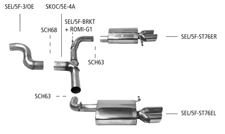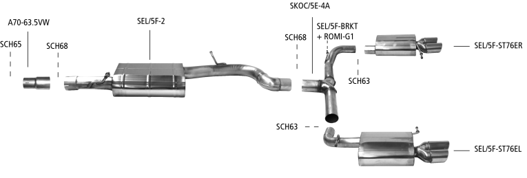 Endschalldämpfer mit Doppel-Endrohr, 20° schräg, mit Lippe RH 2 x Ø 76 mm